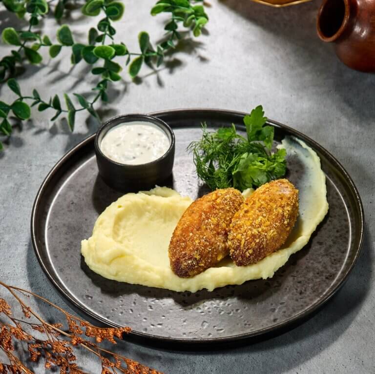 Котлеты рыбные с картофельным пюре и соусом Тар-Тар